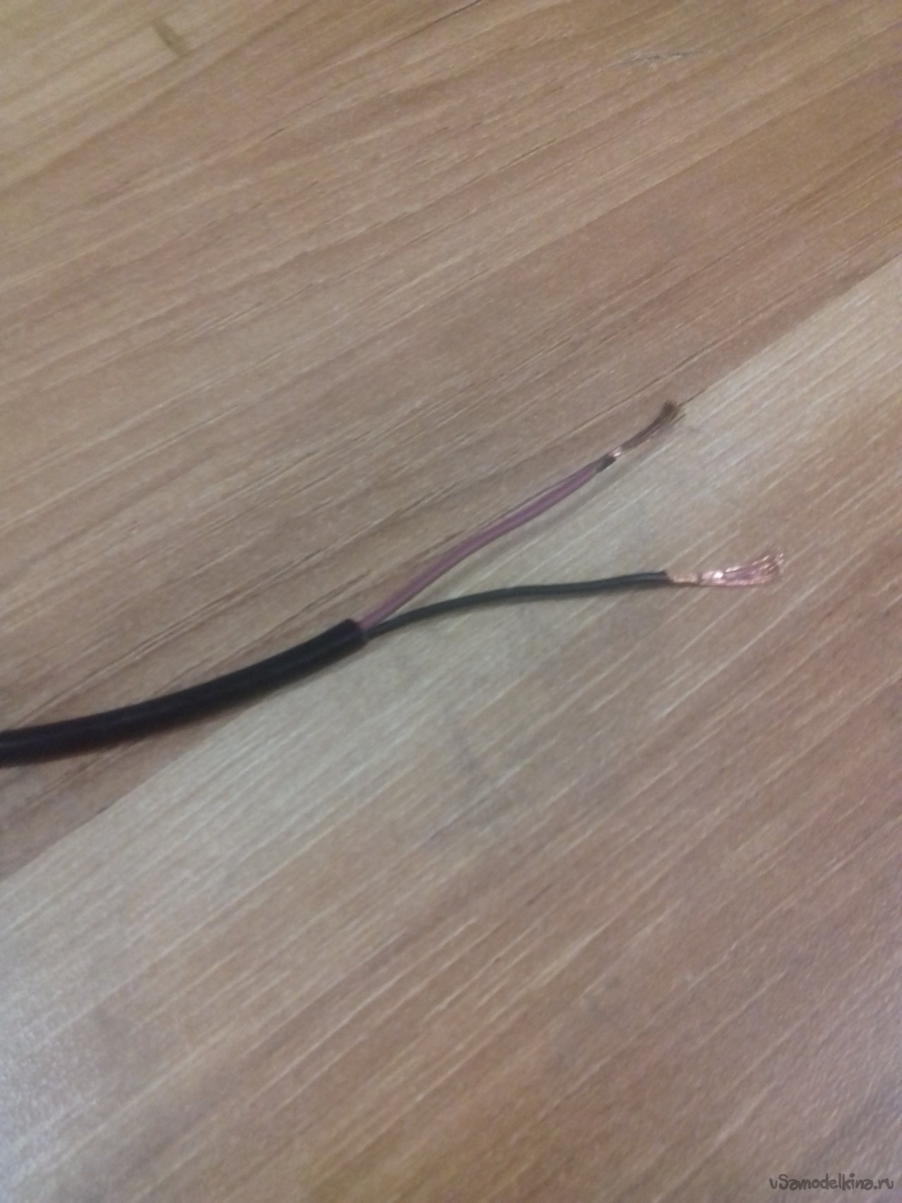 А также проводом ШВВП 2 х 0,5 и 4-жильным телефонным проводом (телефонные удлинители). Тоже двойная изоляция, четыре многожильных провода. Объединял по два.