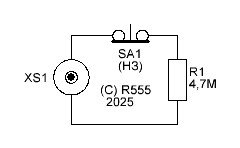 Для проверки исправности прибора служит кнопка «Тест». При её нажатии и удержании параллельно линии подключается резистор R1 сопротивлением 470 кОм. Примерно такое сопротивление имеет датчик при контакте с водой из водопроводного крана. Исправный прибор подаст сигнал тревоги. После отпускания кнопки сигнализатор переходит в дежурный режим работы.