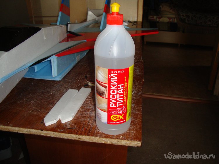 Детали конструкции авиамодели склеиваю при помощи универсального, полимерного , влагостойкого клея «РУССКИЙ ТИТАН»