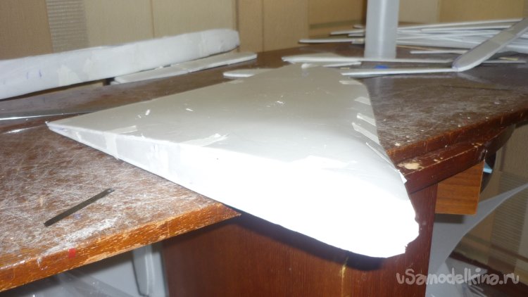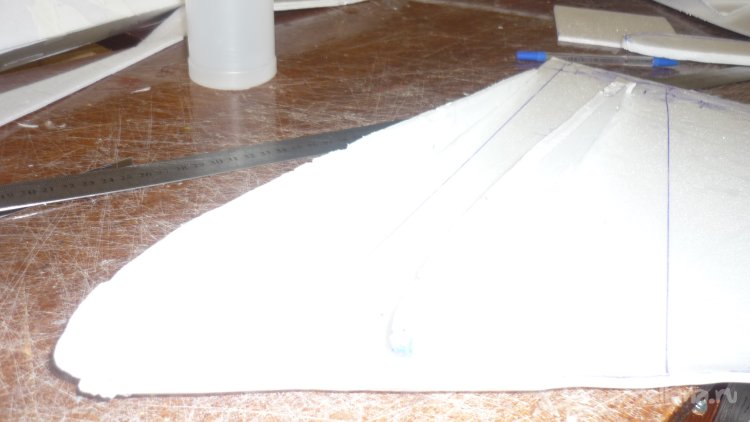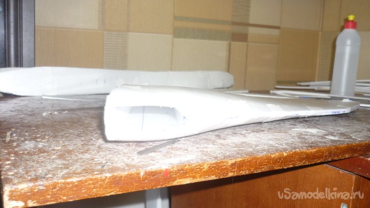 А так же, если будет такая возможность, то , применю, простую, листовую подложку под ламинат, толщиной 5 мм , голубого цвета. Я очень люблю этот материал и часто использую его для создания своих авиамоделей. Подложка очень хорошо подходит при изготовлении деталей большого размера, её размеры позволяют это делать – 1000 х 500 х 5 мм.