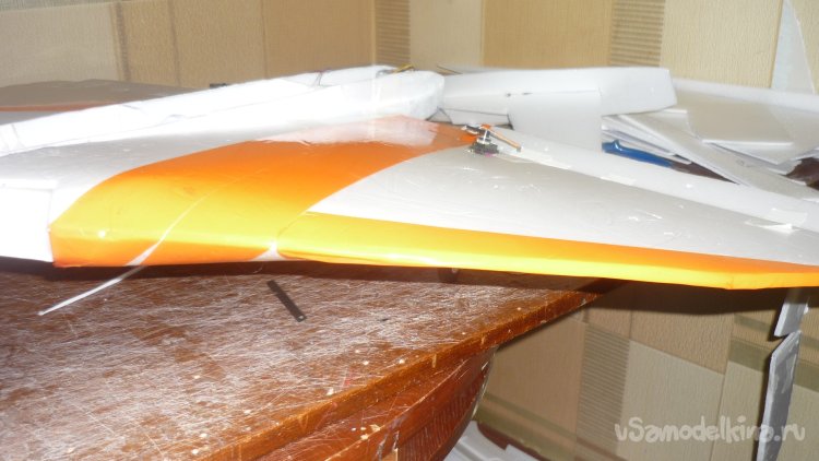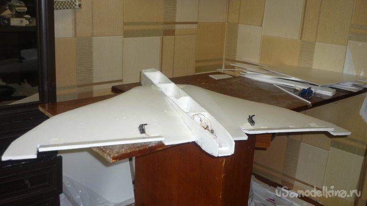 Размечаю и устанавливаю сервомашинки управления элевонами.