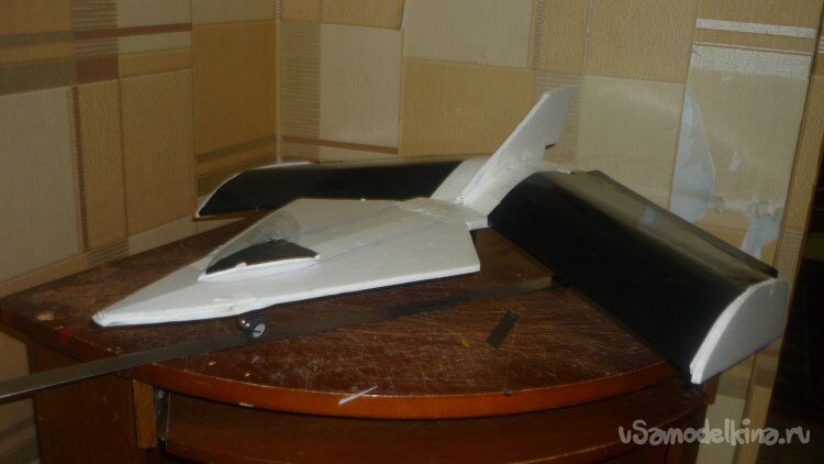 Здравствуйте, уважаемые авиамоделисты. Сегодня я хочу рассказать вам о новой авиамодели «Филин» АлиС – 15, созданной по моему проекту «Память». Филин Bubo bubo — латинское название филина — птицы семейства совиных, одного из крупнейших представителей отряда совообразных. Говоря простым языком, филин - это большая сова, которая хватает всё, что двигается. Новое – это хорошо забытое старое, так гласит народная мудрость. Попалась мне на глаза вот эта фотография И сразу нахлынули воспоминания. как когда то, давным-давно, я создавал , уже, подобные модели используя творческий тимбилдинг коллектива КБ «Деревенщина». Сегодня я решил возродить одну из экзотических авиамоделей, созданных, когда либо, мной, с учётом допущенных ошибок, выявленных при пробных полётах и более подходящего мотора. .Модель создаётся по рисункам Сергея Александрова и других, вспомогательных, фотографий Эту модель делаю из моющейся, экструдированной, гладкой, белой потолочной плитки. Для склеивания деталей конструкции авиасмодели, применяю универсальный, влагостойкий, полимерный клей «РУССКИЙ ТИТАН». В некоторых случаях буду использовать клеящий термопистолет. На модель планирую поставить вот такую электронику. Мотор – 2212 4500 kV. - Винт (пропеллер) – 6 Х 4 Е. Не исключена вероятность установки более мощного мотора - Мотор – 3010С 1300 kV. Винт (пропеллер) =10 Х 6 трёхлопастный. Сервомашинки - MG90S с металлическими шестерёнками , эти сервоприводы имеют крутящий момент 1,8 кг/см (4,8 В), 2,2 кг/см (6 В) . На этой авиамодели не обойтись без микшера. Микшер –V – TAIL MIXER Регулятор оборотов – 80 А. Мощность регулятора взял с запасом, что бы не перегревался.Прибавка в весе незначительная. Аккумулятор – 1500 mAh. На модель планирую поставить вот такие шасси. Внимательно приглядевшись к фотографии филина обратил внимание на его крылья и решил поставить на свою модель крылья с обратной стреловидностью. Сделал набросок, выбрал масштаб и проставил размеры. Фото Ориентировочные габариты модели Длина - 740 мм. Размах крыльев - 960 мм. Вырезал заготовки боковых стенок фюзеляжа. Проверил соединение двух боковых стенок фюзеляжа. вырезал заготовки для обшмвки крыльев. А это косынки, внутренние перегородки фюзеляжа. Вырезал нервюры. На нижнюю обшивку крыльев вклеил нервюры и лонжерон . Смонтировал внешнюю обшивку. Фото Вот такие крылышки получились. Это они в пакете сохнут. Фото фОТО Склеил две половинки ПГО. Склеил две боковые стенки фюзеляжа, вмонтировал переднюю стойку шасси и смонтировал всё на ПГО. Вырезал заготовку днища кабины, обтянул чёрным скотчем. Вырезал фигурки пилотов , из пластиковой бутылки вырезал остекление кабины, примерил.. А это заготовка для гаргрота. Ну, вот, поновогодничали и хватит, пора и за работу приниматься. На чём я тут остановился? Вот такие крылья получились. Размечаю места установки сервомашинок управления элевонами. Обтягиваю крылья чёрным скотчем. Монтирую нижнюю, внешнюю обшивку фюзеляжа. Вклеиваю нижнюю обшивку ПГО. На внешнюю, нижнюю обшивку фюзеляжа монтирую крылья. Склеиваю заготовки для киля в два слоя и примеряю. Монтирую киль. Вырезал заготоаку основания кабинв и обтянул чёрным скотчем. Из пластиковой бутылки вырезал остекление кабины, примерил. Вклеил недостающие части в средней части фюзеляжа. На концы крыльев вклеил законцовки. Получилась вот такая конструкция. Т