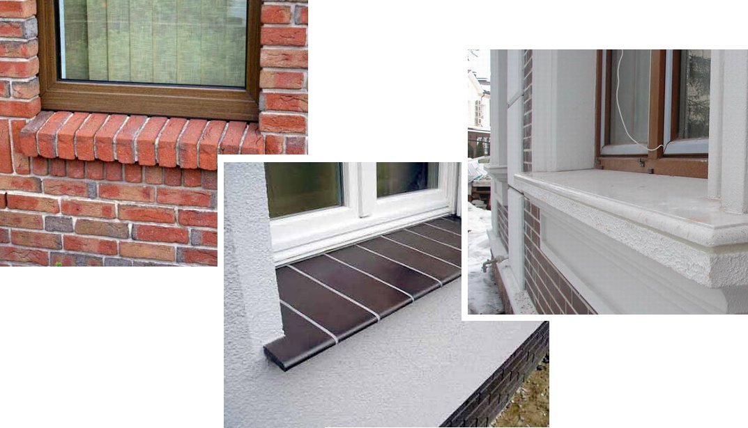 Каменные или керамические материалы это лучшее, что может использоваться в качестве отливов. Такие материалы не гремят от ветра и не барабанят от дождя.