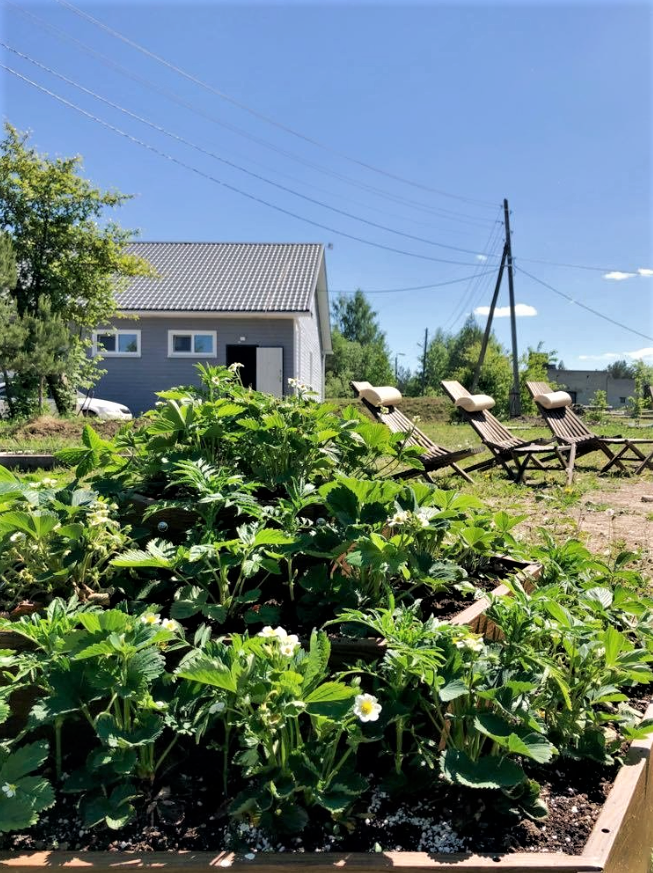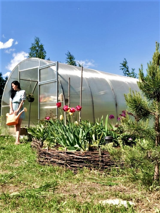 В первые года хозяева возвели теплицу, где теперь всё время выращивают овощные культуры. Помимо этого были куплены плодовые деревья и кустарники: яблони, смородина, малина, ежевика, вишня, груши и слива.