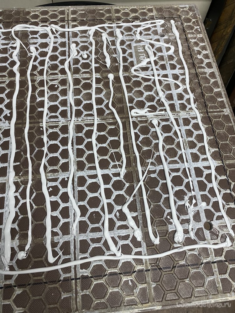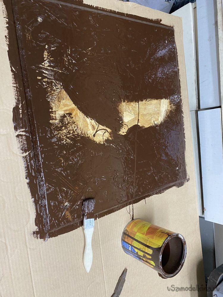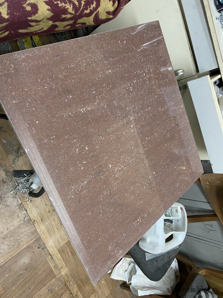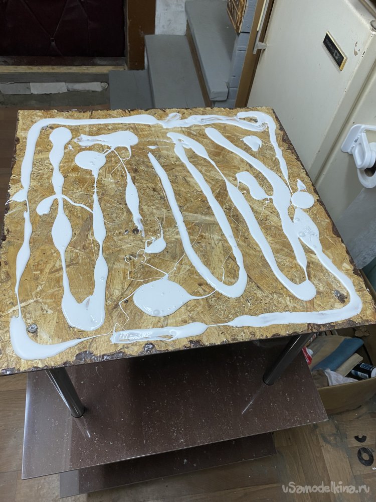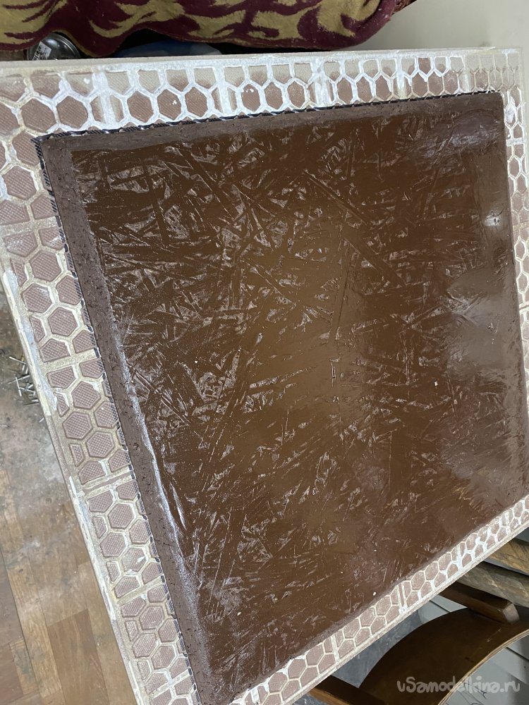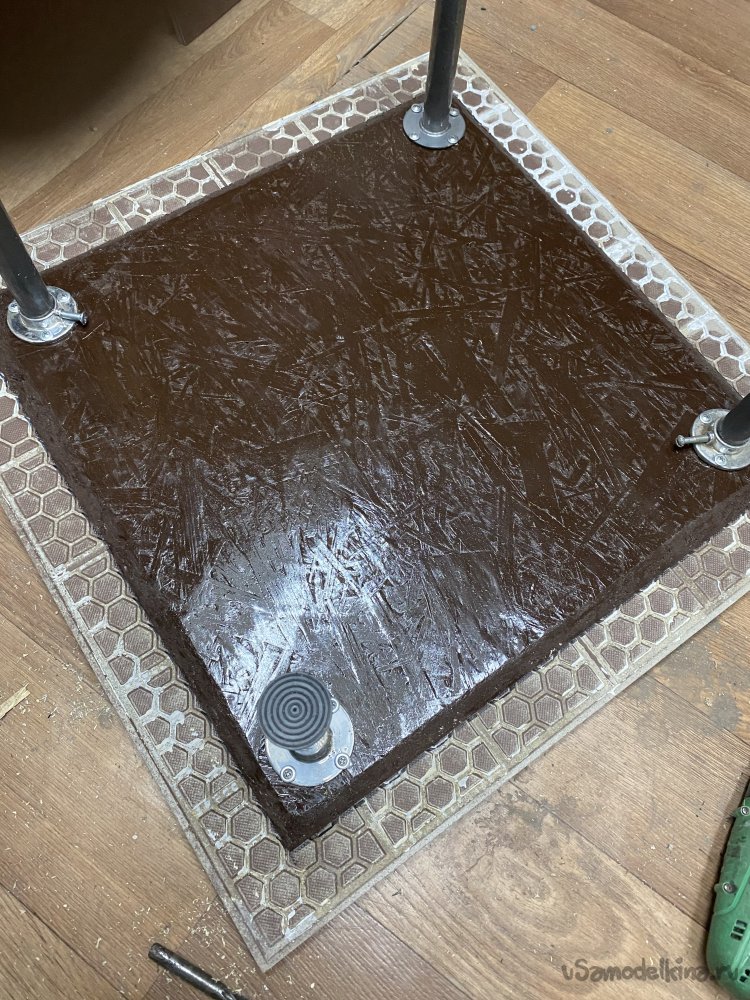 Когда высохли, начал собирать. Деревянные плиты приклеил монтажным строительным клеем к керамограниту.
