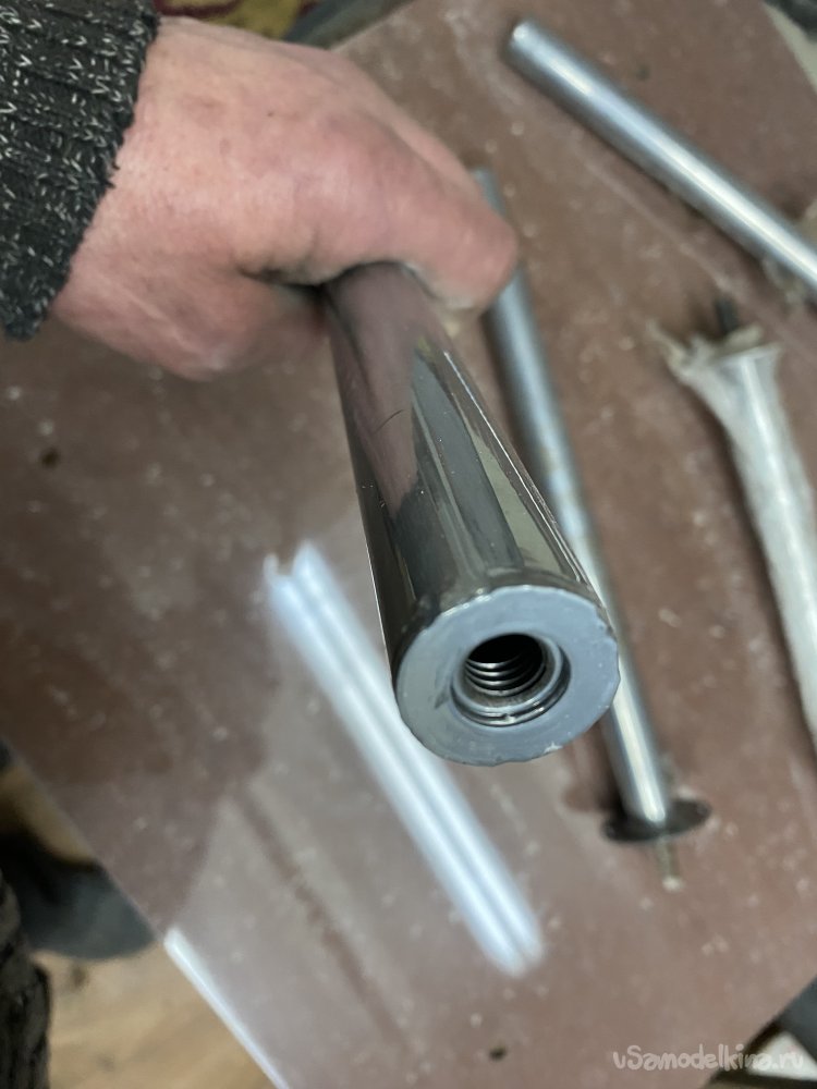 После чего, отступив немного с одного края, зубилом забил на обоих резьбу: