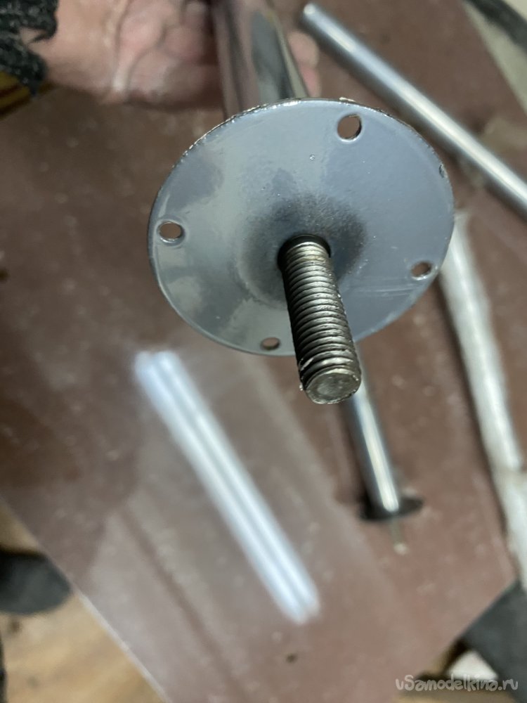 Вставлял в них стойки шпильками в отверстия и прикручивал фланцы шурупами, длиной 10 мм:
