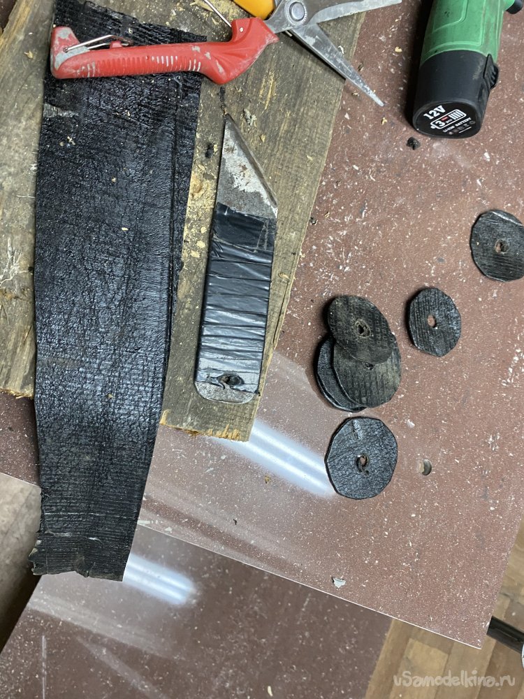 У меня оставались со времён стройки обрезки наплавляемого гидроизола. Из них я навырезал шайб-прокладок: