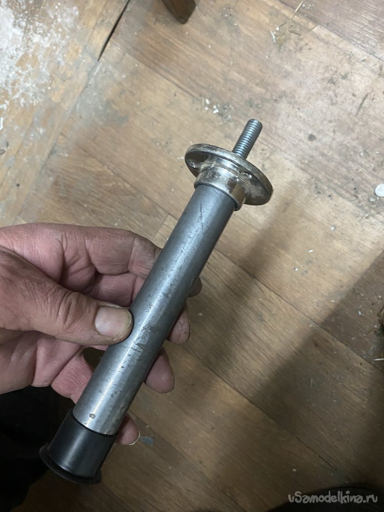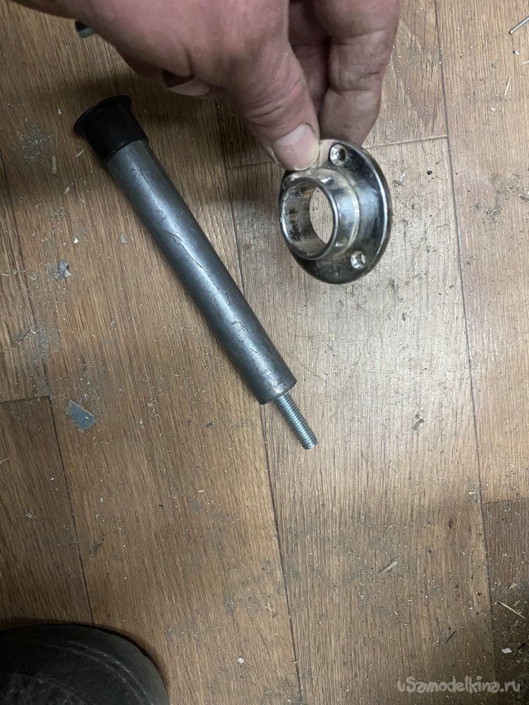 Но вот, как-то поехал сдавать металлолом, и увидел, что кто-то сдал кучу мебельных элементов. Это были стойки для витрин. Трубка, длиной тридцать пять сантиметров. С одной стороны в торце у неё отверстие с резьбой М10, с другой - фланец и торчащая шпилька, тоже с резьбой М10. Т.е., в полках витрины сверлятся отверстия, и эти стойки вставляются в них. Сверху на торчащий конец шпильки накручивается вторая стойка и процесс повторяется: