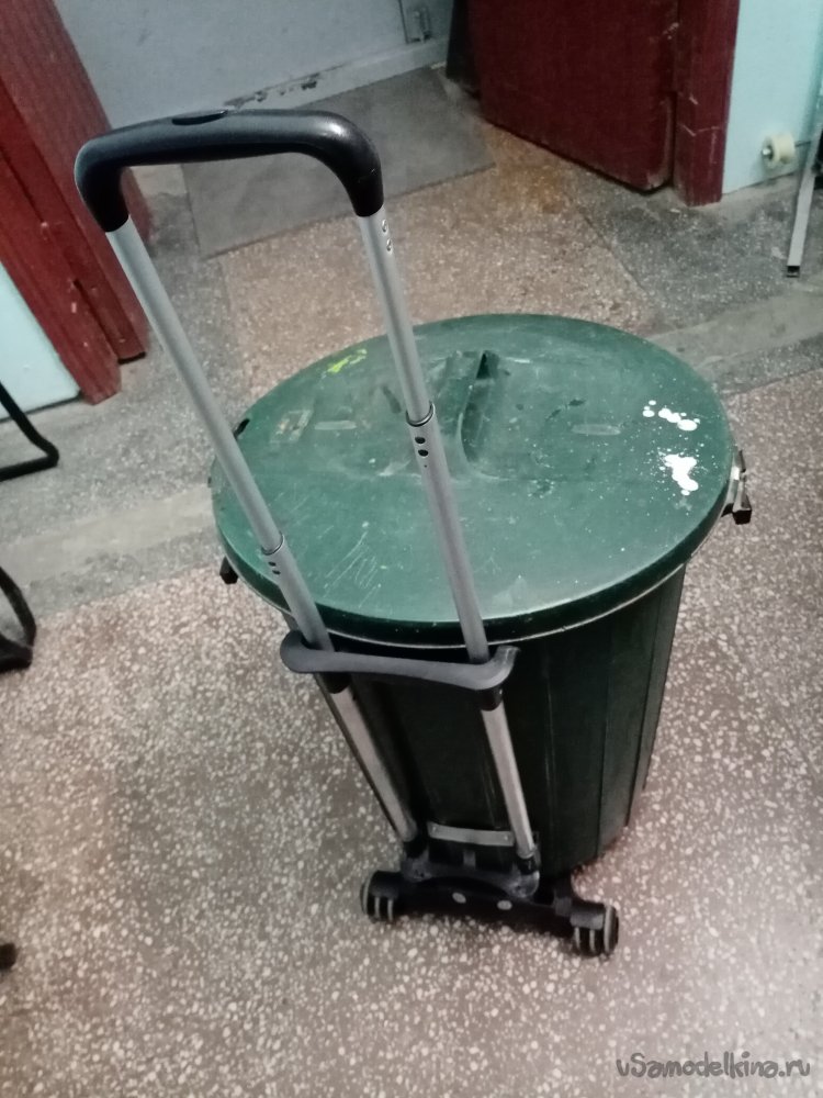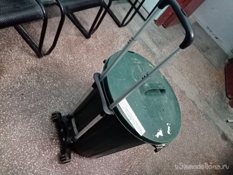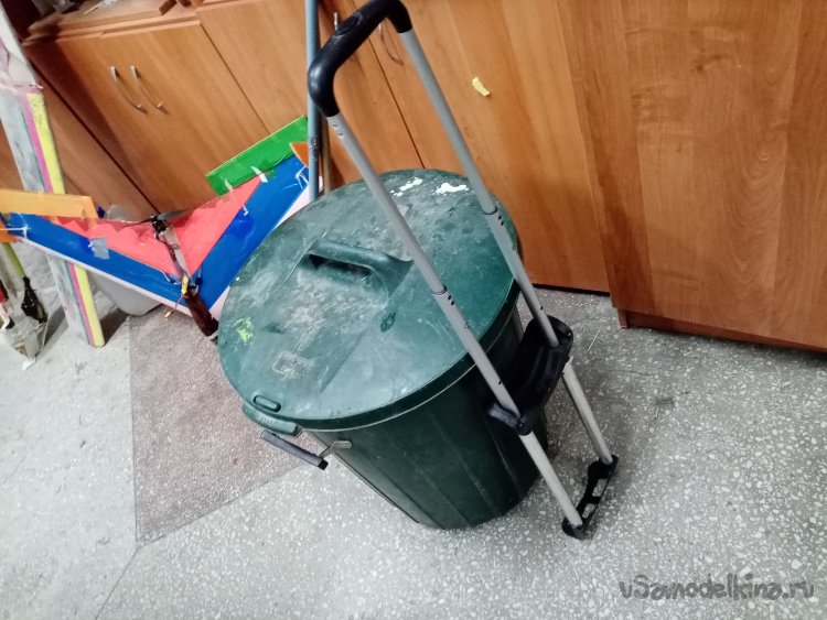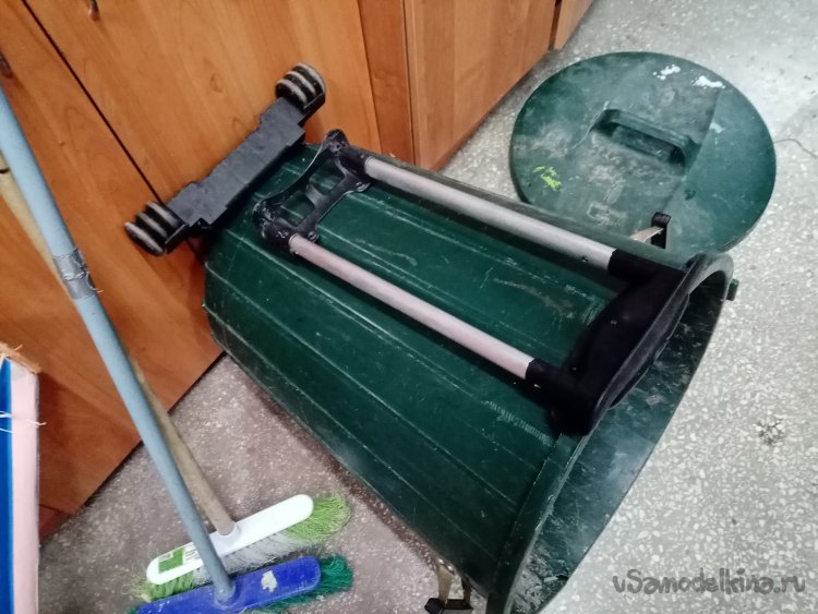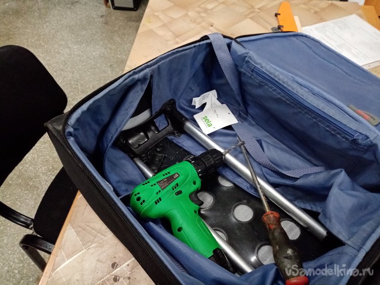Провожу тесты конструкции. Ручка раскладывается и складывается, колесики крутятся.