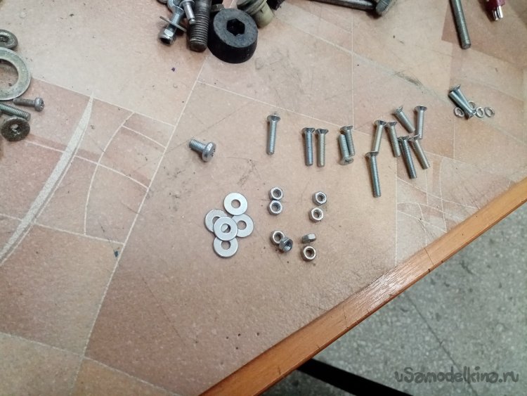 Как всегда, пошарив по углам и коробкам, а так же банкам с элементами крепления нашел нужные болтики на 4мм, усиленные шайбы и гайки. Даже гроверы тоже были.