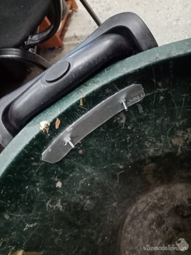 Закрепляю площадку с колесиками через отверстия в днище длинными болтиками с накладками. И опять нет фото моих упражнений внутри бака. Но получилось хило. Нужно еще добавит элементы крепления с внешней стороны. Подбираю болтики подлине и усиленные шайбы. Сверлю отверстия и закрепляю площадку с колесиками еще и с внешней стороны бака.