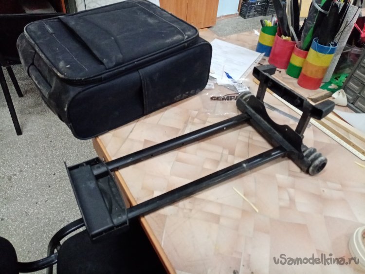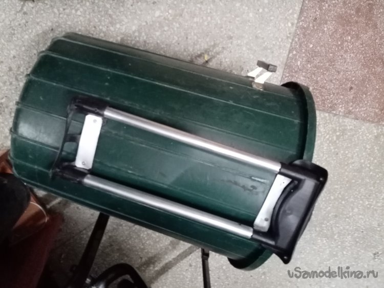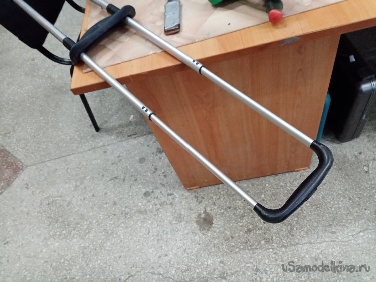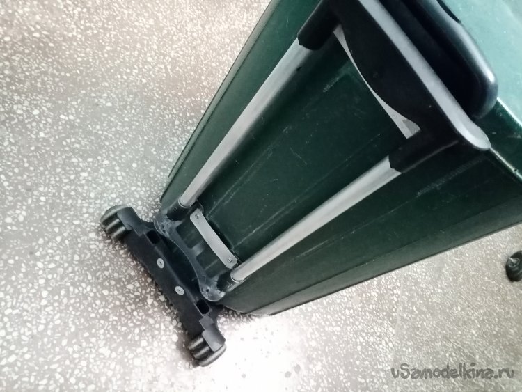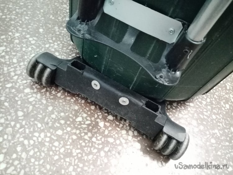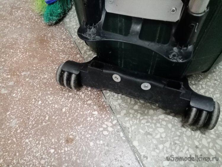 Попались мне в руки несколько почти целых запчастей от транспортных чемоданов. У одного вырваны колесики. Но есть целая ручка и даже работает. Раскладывается и складывается. От второго остались только колесики с остатками крепления.