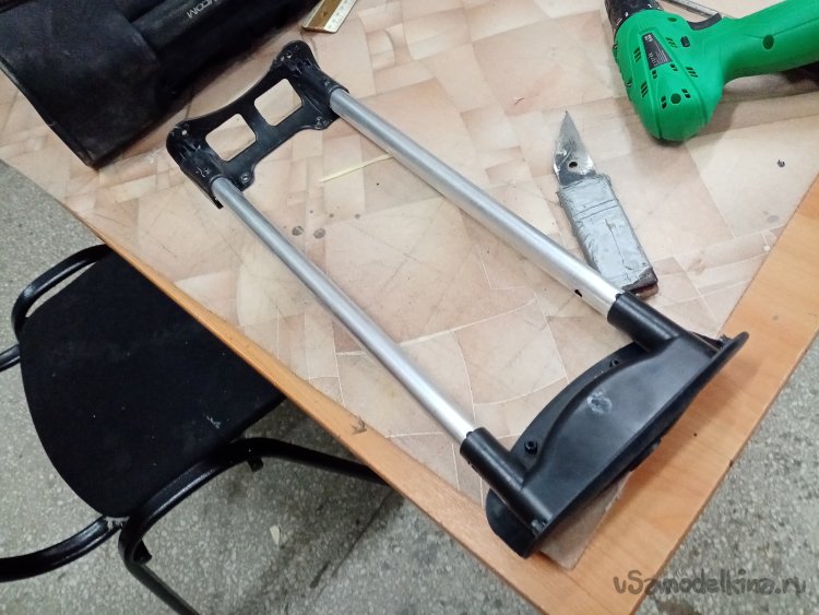 После непродолжительной возни заклепки были успешно высверлены, телескопические ручки демонтированы вместе с пластиковыми креплениями.