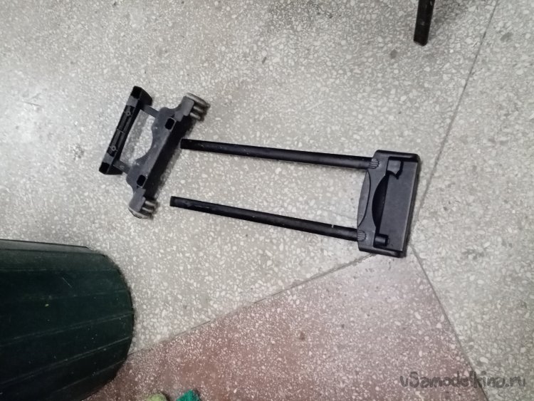 Из второй конструкции мне нужны только колесики. Поэтому нужно разобрать агрегат. Процедура прошла очень легко. Все элементы крепления были сломаны до меня. Блок колесиков вместе с основанием и креплением легко отделился от арматуры.