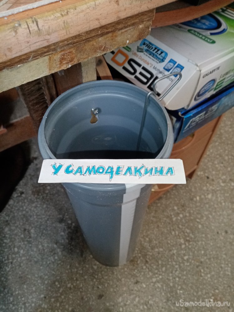 Некоторое время назад изготовил небольшую, удобную мусорницу в «при столовом» варианте. Идея заключается в уборке различного мелкого мусора в процессе работы. Не бегать каждый раз к большому «ведру». Процесс не занял много времени. За основу взята картонная труба от линолеума. Выпилил дно из мебельного щита в 16 миллиметров при помощи электрического ручного лобзика. Просверлил отверстие в стенке мусорницы, в ножку стола вкручен шуруп по дереву. На который вся конструкция благополучно подвешена. Данный девайс успешно эксплуатировался парочку лет. Все в норме. Мелкий мусор складировался в процессе работы, по наполнению выбрасывался в большую мусорку. Но есть нюанс. Не только мелкие обрезки и стружки приходилось выбрасывать и листы бумаги, пленку от упаковки. В результате они упирались в стенки и не позволяли нормально опорожнить объем. Приходилось извлекать бумагу и упаковку руками. Конечно, не выбрасывал в картонную трубу жидкие отходы, не приходилось лазить в жиже. Но ковыряться в мусоре руками тоже не «айс». Попадались и обломки лезвий ножа и проволока, а также обрезки жести с острыми краями. Однажды уколовшись об острый предмет, понял, так дальше невозможно эксплуатировать потенциально опасный вариант маленькой мусорницы. Хотя и удобной. Как всегда решение не затянулось, в результате ремонта осталась пластиковая труба достаточного диаметра. Вот из нее и сделаю новую мусорницу в экстрактором содержимого. Размерчик думаю, оставить прежний. Проверенный временем. Приложив старый вариант, к пластиковой трубе отмеряю нужные сантиметры карандашом. Нужно точно разметить линию отреза. Есть простой способ. Оборачиваю трубу листом бумаги и по краю провожу линию разметки. Точно перпендикулярно получается. Этот метод действительный для любых труб, любого диаметра. Хорошо по пластику режет советская пила по металлу. Есть знак качества и цена в 5 рублей 80 копеек. Сохранился такой инструмент из прошлой жизни. Даже лезвие оттуда. Это вам не китайский ширпотреб. Есть конечно вариант и еще один. Самодельная пила по металлу с мелким зубом. Но все же воспользуюсь пилой по металлу. Операция не заняла много времени. Слегка зажимаю трубу в слесарные тиски. Поворачивая трубу пилю точно по перпендикулярной разметке. Но на краях реза остаются лохматушки. Нужно применить шкурки различной зернистости. После обработки проблема осталась. Вернее мелкие лохматушки. Поэтому еще раз обработаю края треугольным сапожным ножом. Используя его как циклю. С краями покончено. Нужно вырезать днище. Пошарившись по углам нашел кусок толстой фанеры пробитой гвоздями из пистолета. Эти тонкие гвоздик извлекал с большим трудом. Интересная конструкция этого гвоздильного пистолета. Сила удара впечатляет. Вгоняет, тонкую проволоку в два слоя толстой фанеры на вылет. Ну да ладно. Гвозди извлечены. Немного почистил фанерку шкуркой по плоскости. Установив трубу, вертикально обвожу карандашом по внешнему контуру. Заготовка днища готова. В бой вступает ручной электрический лобзик. Нужно немного настроить агрегат. Первое дело меняю пилку на другую, с мелким зубом. Затем немного наклоняю плоскость реза. Чтобы на краю получился небольшой конус. И еще пилить буду по внутреннему ободу разметки. Чтобы учесть толщину стенки трубы. Можно конечно пойти простым путем. Меряю вну