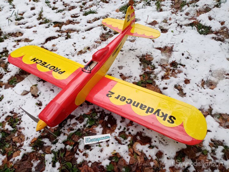 Жалко мне сломанную технику. Поэтому в чате дал объявление, принимаю битые модели, бесплатно конечно. Иногда братья пилоты подбрасывают интересные экземпляры. Конечно не всегда есть время в плотную заняться восстановлением, но я честно складываю и храню эти обломки. Этот самолетик у меня пролежал в ожидании пару лет. Вышел в отпуск и хотел восстановить нескольких моделей. Но жизнь движется и не все совпадает с моими хотелками. Полностью восстановил только этот симпатичный самолетик. Ладно, хватит воду лить, перехожу к делу. Отдали небольшую модель низкоплана с передним управляемым колесом шасси. Очень даже симпатичные обломки у меня на столе. Начинаю осмотр приобретения. Фюзеляж сломан до задней кромки крыла. На нем остатки переднего прозрачного козырька и обтекателя на гаргроте. Крыло немного помятое, но в основном целое. Шасси три штуки тоже в хорошем состоянии. Начну с фюзеляжа он наиболее пострадал. Снимаю обшивку очень осторожно, главное не нанести еще больших повреждений. В работе использую весьма мощный фен для волос. Предварительно прогрев участок пленки осторожно снимаю её с бальзы. К стати качество дерева не очень. Лохматое, кривослой и пористое. Продвигаюсь как сапер по минному полю. Предварительная операция завершена. Из хвостовой части торчат тяги в боуденах. Целые. Мебельные врезные гайки крепления крыла сохранились. Все внутренние переборки из 2 мм авиационной фанеры. Нет у меня такой. Начинаю искать решение. На клее ПВА соединяю парочку листиков тонкой, авиационной фанеры из старых запасов. Помещаю пластинку под пресс. Пока идет склейка нужно нарисовать чертеж утраченной носовой части фюзеляжа. Разобраться с креплением крыла. Для начала лезу в интернет, ищу чертеж. Но нет, как правило, продаваемые модели не имеют их в свободном доступе. Хорошо. Захожу с другой стороны. Нет чертежа. Должна быть инструкция. Там есть общее описание сборки и наверняка размеры. В данном случае нужна длина фюзеляжа. Поиски увенчались успехом и довольно быстро. Инструкция по сборке данной модели нашлась. Прочитал, проникся, можно двигаться дальше. Рисую чертеж. Предварительный набросок основного шаблона, сразу за отломанной частью. В процессе конечно нужно будет корректировать размеры. Можно и по-другому подойти к этой проблеме. Но мне нравится так работать, методом тыка. Я бы сказам по интуиции, очень занимательно, попаду в размер с первого раза или приходится немного переделать конструкцию. В моделке нарезал реек по отмеренным деталям на маленькой пиле. Режет просто замечательно, практически не нужно обрабатывать шкуркой. Перехожу в гаражную норку. Наращиваю отломанные стрингеры рейками. Парочка листов авиационной фанеры склеилась. Вычерчиваю по шаблонам детали, можно пилить. Немного корректирую шаблоны и выпиливаю первые два. Которые устанавливаются сна передней и задней кромке крыла. Затем мне нужны продольные связи на которые упираются крылья. Делаю шаблон проверенным методом из плотного картона. Вырезаю примерное отверстие слегка похожее на крыло. Затем устанавливаю его поперек и приклеиваю вплотную кусочки картона. После этих танцев имею четкий шаблон обводов крыла. По шаблонам выпиливаю парочку стрингеров как упоры для крыла. Использую 4 мм шлифованную фанеру. В этом элементе не стоит облегчаться, напряженное место. 