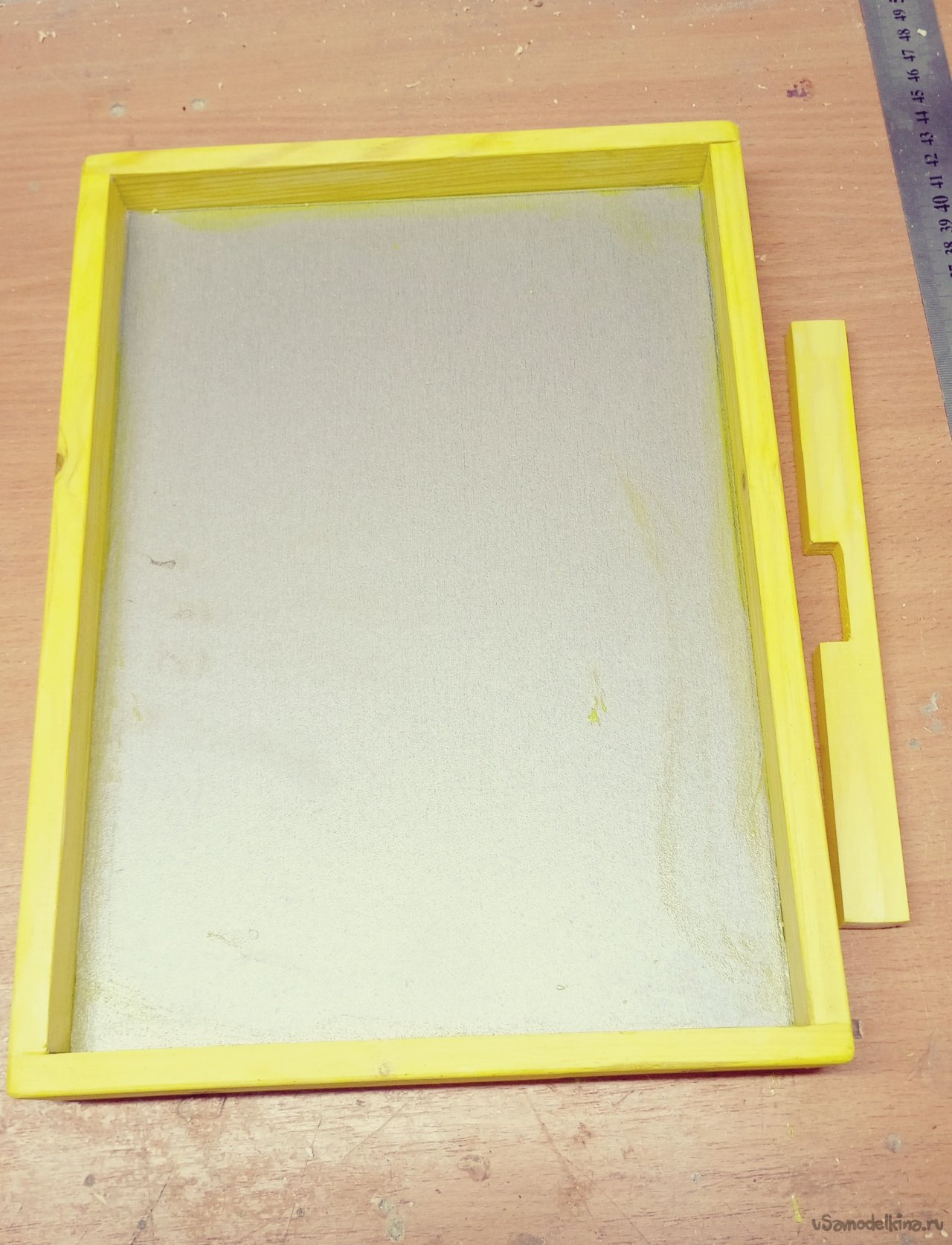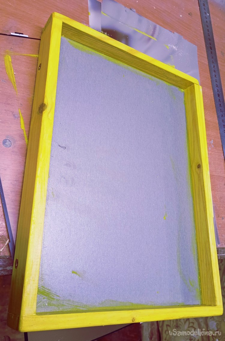 Когда все деревянные элементы были готовы, я приступил к их покраске. Мне хотелось придать игре яркий, но в то же время естественный вид. Я выбрал желтую краску, которая не перекрывает структуру дерева, а лишь придает ему легкий оттенок. Это позволило сохранить естественную красоту дерева, подчеркнув его текстуру и создав ощущение тепла и уюта. После того как краска высохла, я аккуратно приклеил распечатанный рисунок поля вовнутрь.