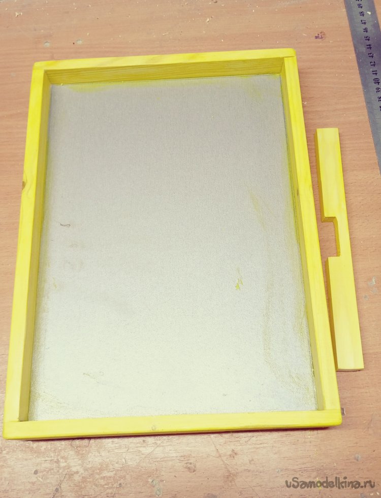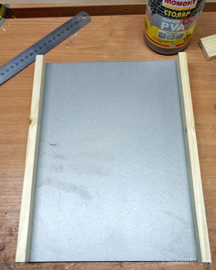 После того как все элементы были выпилены, я тщательно прошёлся по ним шкуркой. Это важный этап, который не только делает поверхность гладкой и приятной на ощупь, но и подготавливает дерево к дальнейшей обработке. Затем я разметил места под шурупы и нанес тонкий слой клея по торцам плиты. Клей обеспечил дополнительную фиксацию, а шурупы – надежное крепление бортиков к основе.