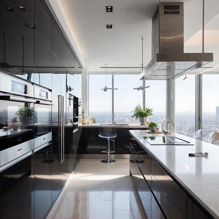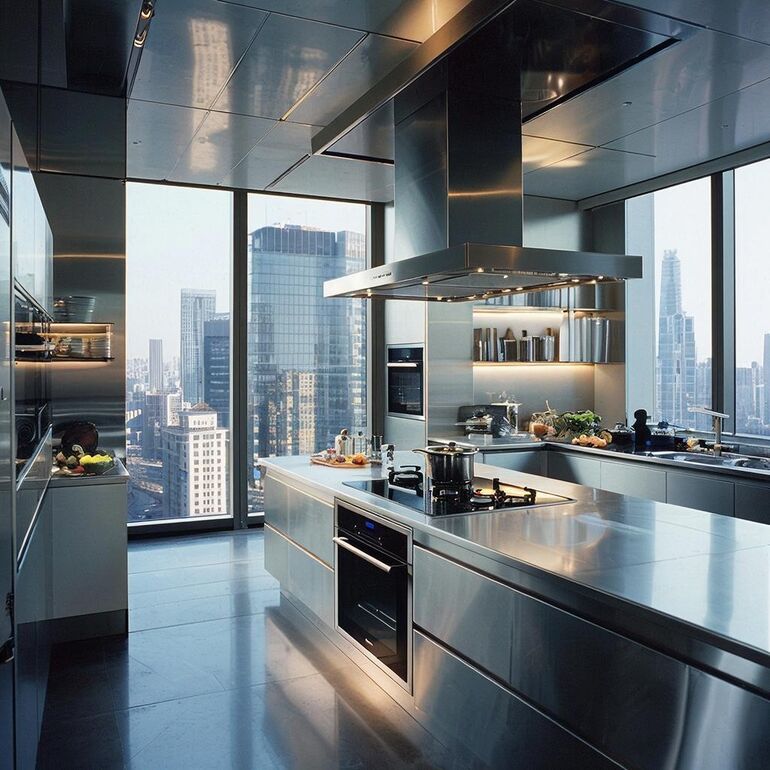 Технологическая интеграция выходит на новый уровень: умная техника с управлением через смартфон, индукционные панели с автоматическим распознаванием посуды, системы скрытой вентиляции — всё это делает процесс приготовления пищи комфортнее и эффективнее. При этом технологии остаются незаметными, не нарушая гармонии интерьера: панели управления скрываются, провода маскируются, а техника встраивается в мебельные модули.