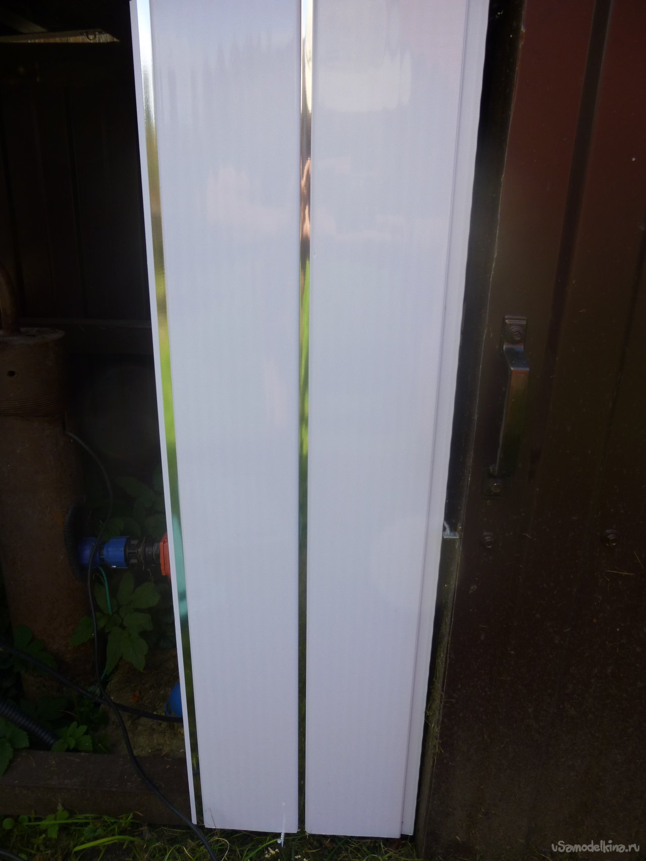 Хотя я и убираю саму станцию на зиму в гараж (так как не проживаю на даче зимой, бываю иногда наездами, чаёк в термосе с собой беру), но всё-таки негоже, когда снег наметает внутрь сугроб. В прошлом году, когда только поставил насосную станцию, просто зашил проём на зиму остатками потолочных панелей из санузла (всего-то 16 шурупов шуруповёртом завернул).