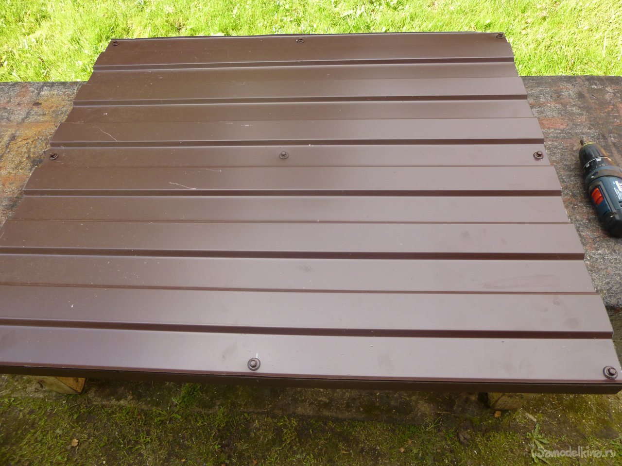 На следующий день прикрутил профнастил к рамке кровельными саморезами (всегда беру с запасом, авось пригодятся).